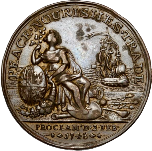 1749 Peace of Aix-La-Chapelle 41.5mm bronze (pinchbeck) medal MI 652/355 Eimer 620 Rare
