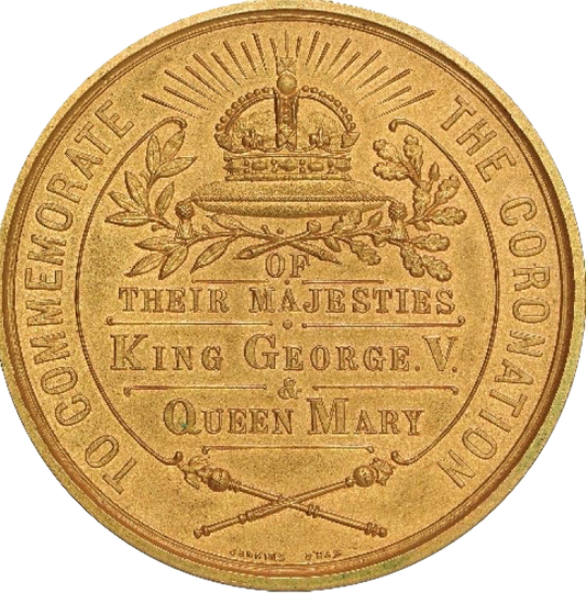 1911 Coronation 64mm gilt bronze medal in case of issue BHM 4043 UNC