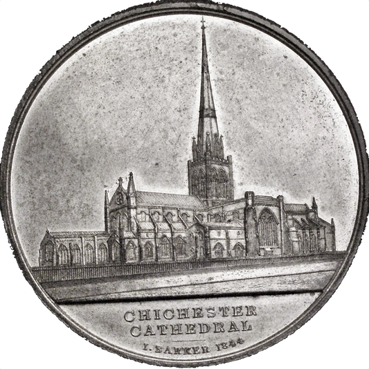 1844 Chichester Cathedral 60mm white metal medal by I Barker BHM 2164
