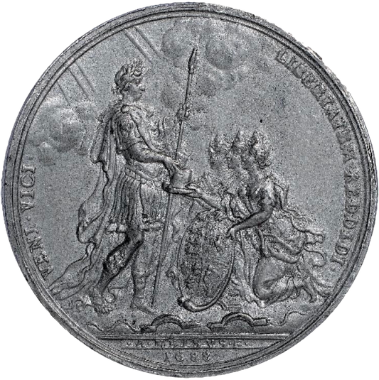 1689 Crown offered to William 61mm pewter medal MI 657/17 E306 EF
