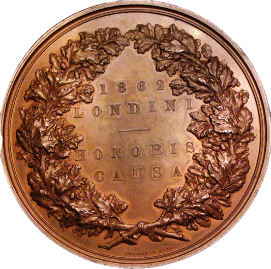 1862 International Exhibition 76.5mm official prize copper medal by LC Wyon BHM 2747 E 1553