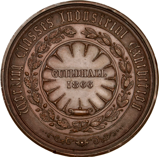 1866 Working Classes Industrial Exhibition 56mm copper medal BHM 2871 Very rare