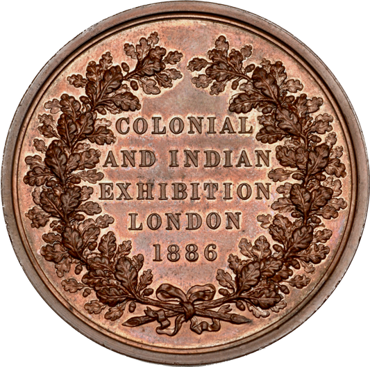 1886 Colonial and Indian Exhibition 52mm copper medal in fitted case by LC Wyon BHM 3209