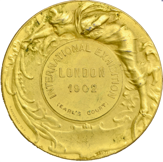 1902 International Exhibition, Earl’s Court 58mm gilt copper medal W&E 4412A.1
