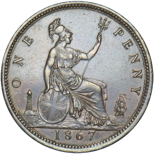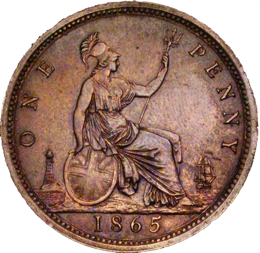 1865 Penny F50 Unaltered date AUNC