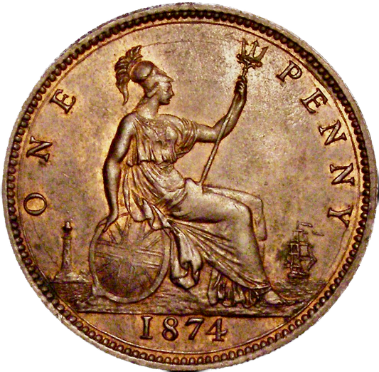 1874 Penny F72 Obv 7 Rev H Rare (R12) AUNC