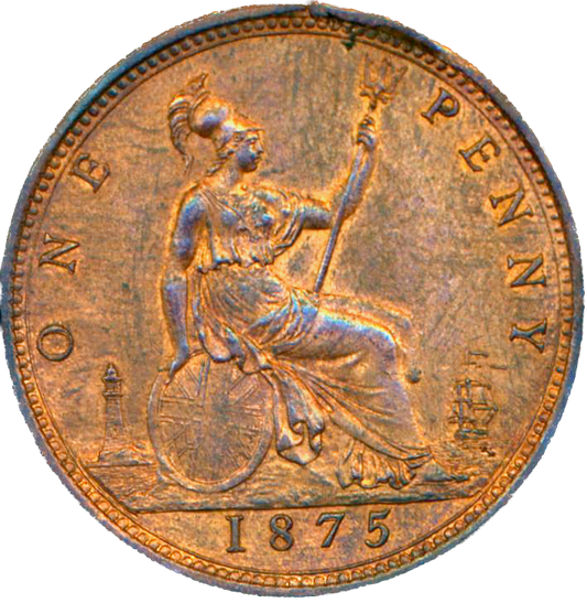 1875 Penny F82 Obv 8 Rev J AUNC