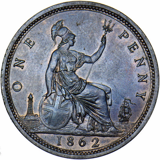 1862 Penny S3954 F39 Obv 6 Rev G UNC