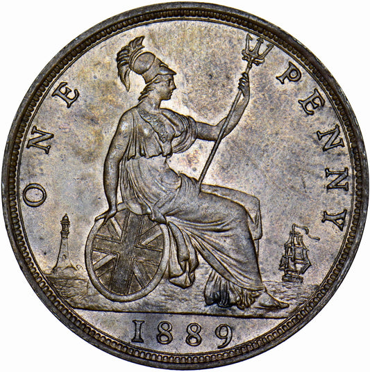 1889 Penny S3954 F128 Obv 13 Rev N UNC
