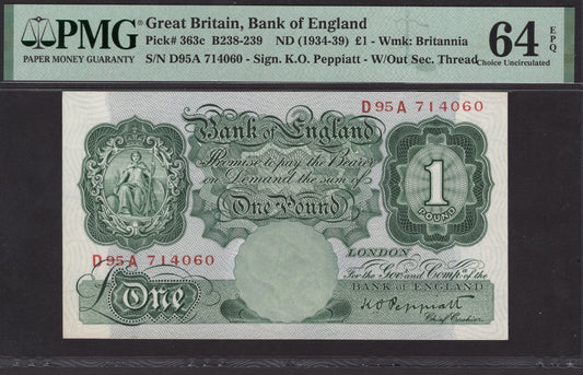 ENGLAND P.363c B239 1934 - 1939 Peppiatt £1 CHOICE UNC 64 EPQ