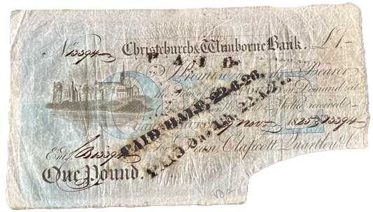 Christchurch & Wimbourne Bank 1825 £1 banknote Outing 556b for type