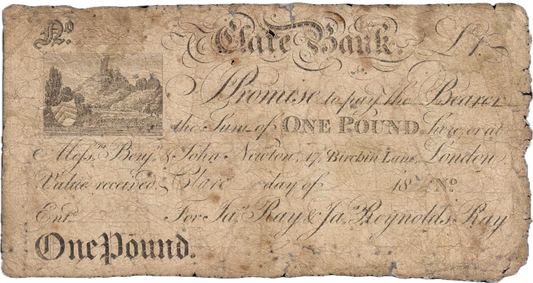 Clare Bank 1801-1819 £1 banknote Outing 568a