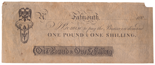 Falmouth Bank 180- £1 & 1/- banknote Outing unlisted