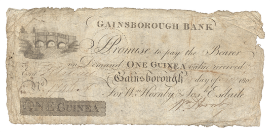 Gainsborough Bank 1801 1 guinea banknote NF Outing 811a