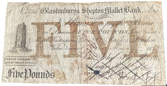 Glastonbury & Shepton Mallet Bank 1818 £5 banknote Outing 818f