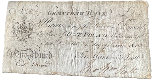 Devonshire Bank 1817 £1 banknote Outing 765a