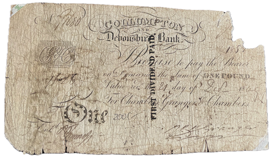 Collumpton and Devonshire Bank 1809 £1 banknote Outing 582a