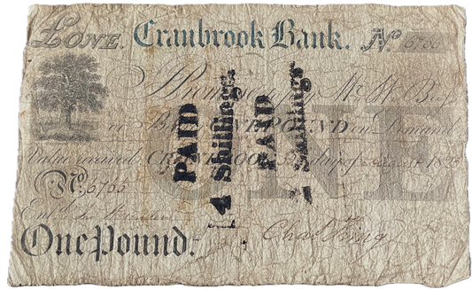 Cranbrook Bank 1823 £1 banknote Outing 610a