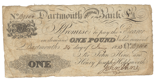 Dartmouth General Bank 1823 £1 banknote NVF Outing 639a
