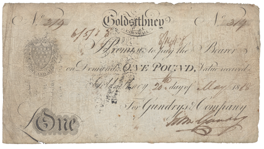 Goldsithney Bank 1818 £1 banknote F Outing 833a