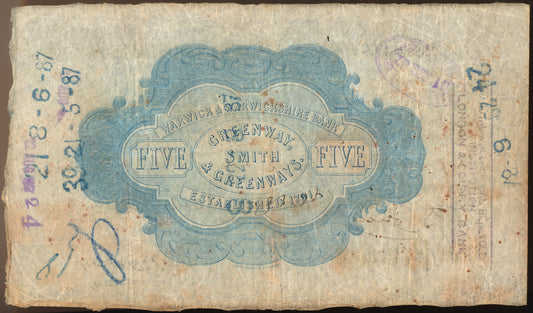 Warwick & Warwickshire Bank 1887 £5 banknote Outing 2279e
