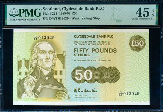 SCOTLAND P.222 SC361 1992 Clydesdale Bank £50 D/AT 45EPQ CHOICE EF