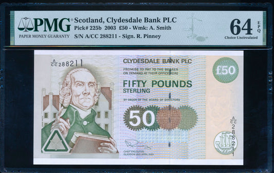 SCOTLAND P.225b SC362b 2003 Clydesdale Bank £50 CHOICE UNC 64 EPQ