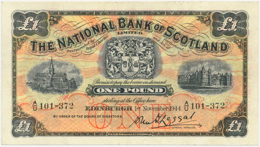 SCOTLAND P.258b SC503b 1944 National Bank of Scotland £1 VF A/U