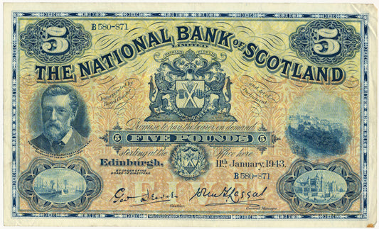 SCOTLAND P.259d SC512d 1943 National Bank of Scotland £5 VF B