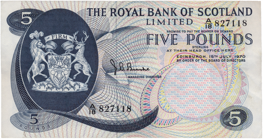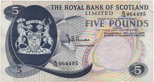 SCOTLAND P.335 SC816b 1970 Royal Bank of Scotland £5 VF