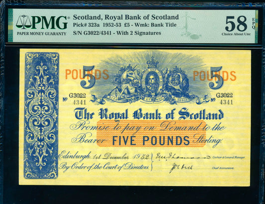 SCOTLAND P.323a SC807a 1952 Royal Bank of Scotland £5 G Choice AUNC 58 EPQ