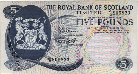 SCOTLAND P.330 SC816a 1969 Royal Bank of Scotland £5 EF