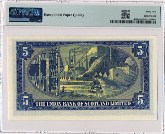 SCOTLAND P.S817a SC913a 1952 Union Bank of Scotland £5 Gem UNC 65 EPQ