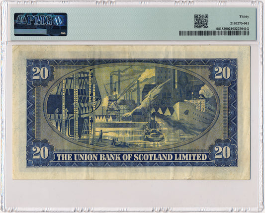 SCOTLAND P.S818 SC933 1952 Union Bank of Scotland £20 VF 30