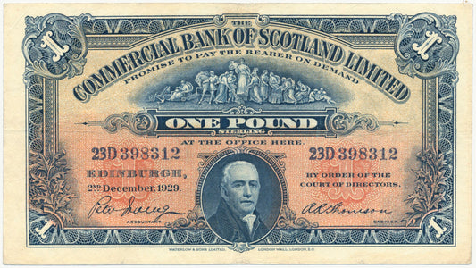 SCOTLAND P.S331a SC404c 1929 Commercial Bank of Scotland First series £1 AVF 23D