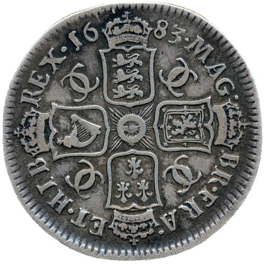 1683 Shilling Fourth bust S3381 ESC 558 Very rare (R2) GF