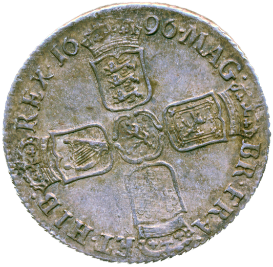 1696 Shilling First bust E over ? in DEI S3497 ESC 1104var GVF