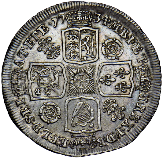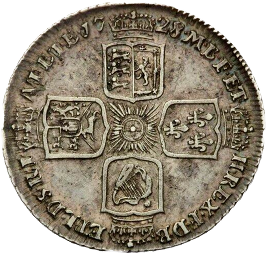 1745/34 Shilling Old head Roses in angles S3702 ESC 1723 Rare (R) GVF