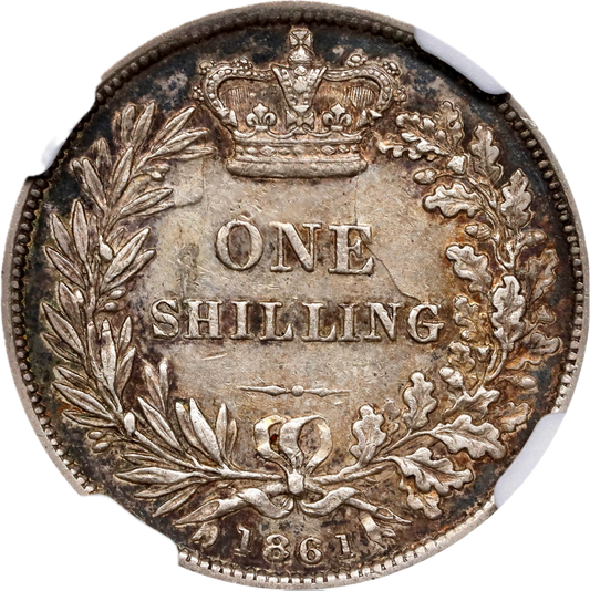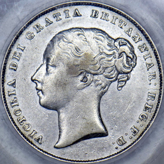 1860 Shilling Second young head S3904 ESC 3018 Rare AUNC ICG AU 50