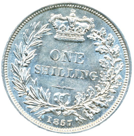 1857 Shilling Second young head S3904 ESC 3008 Scarce AUNC/UNC