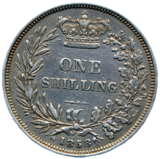 1858/58 Shilling Second young head S3904 ESC 3013 Excessively rare (R4) VF