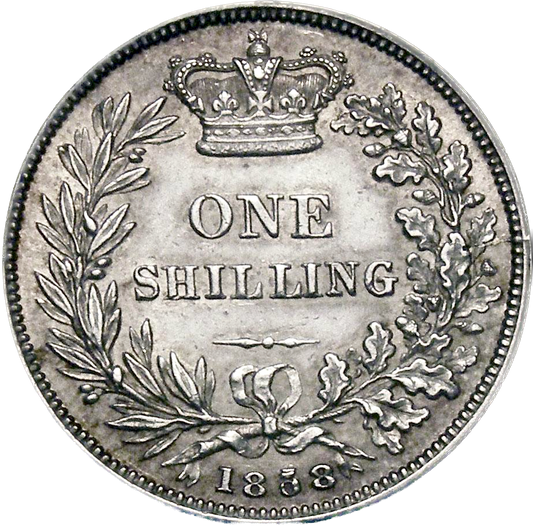 1858/9 Shilling Second young head S3904 ESC 3014 Extremely rare (R4) AUNC LCGS70