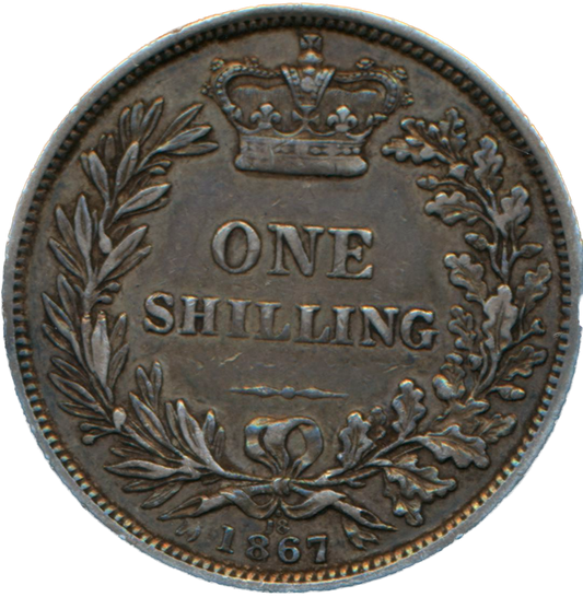 1867 Shilling Second young head die 18 Pellet above die number S3905 ESC 3035 Very rare (R3) F