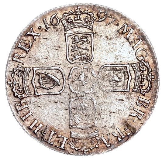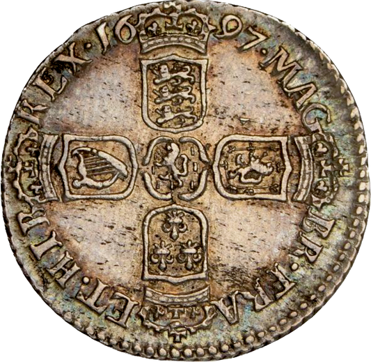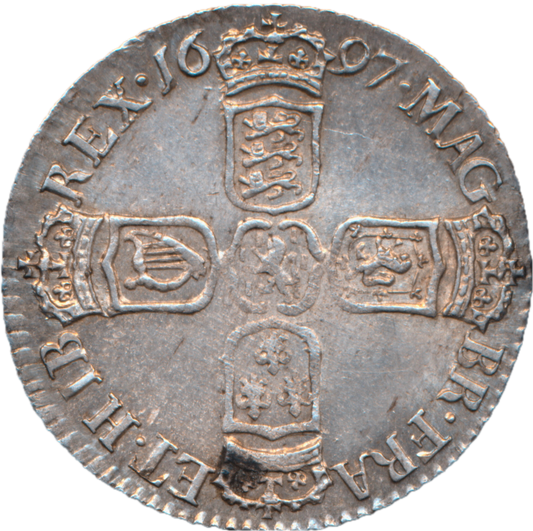1697 Sixpence Third bust GVLIEIMVS error S3538 ESC 1237 Excessively rare (R4) UNC