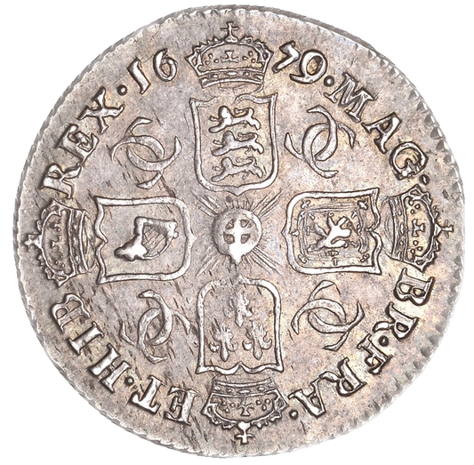 1679/7 Sixpence S3382 ESC 575 Excessively rare (R5) NEF/GVF