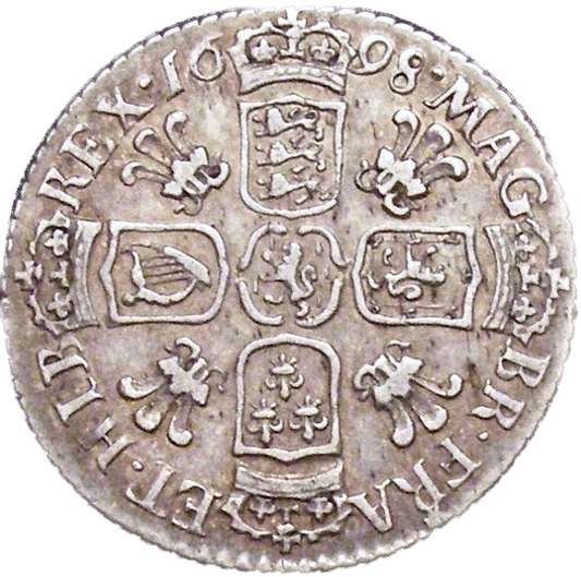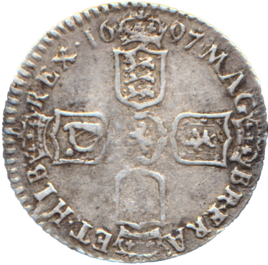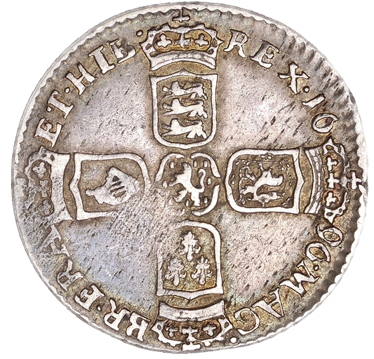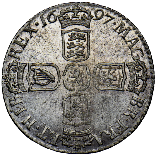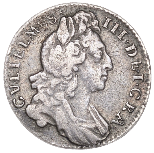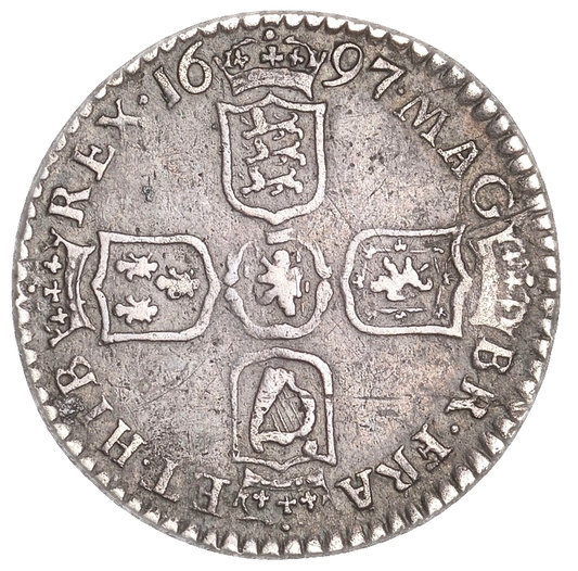 1697 Sixpence First bust Arms transposed S3531 ESC 1223 Excessively rare (R5) GF