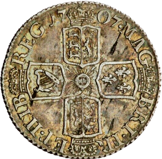 1707 Sixpence Plain in angles Wide shields S3619 ESC 1453 Scarce GVF
