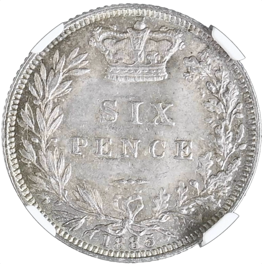 1885 Sixpence Third young head S3912 ESC 3258 Scarce NGC MS62