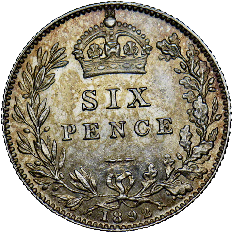 1892 Sixpence Jubilee head S3929 ESC 3283 UNC