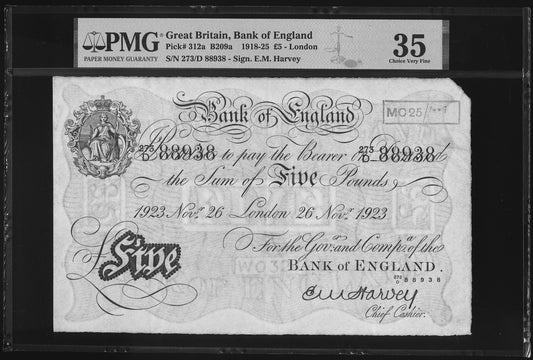 ENGLAND P.312a B209a 1923 Harvey £5 273D Choice VF35